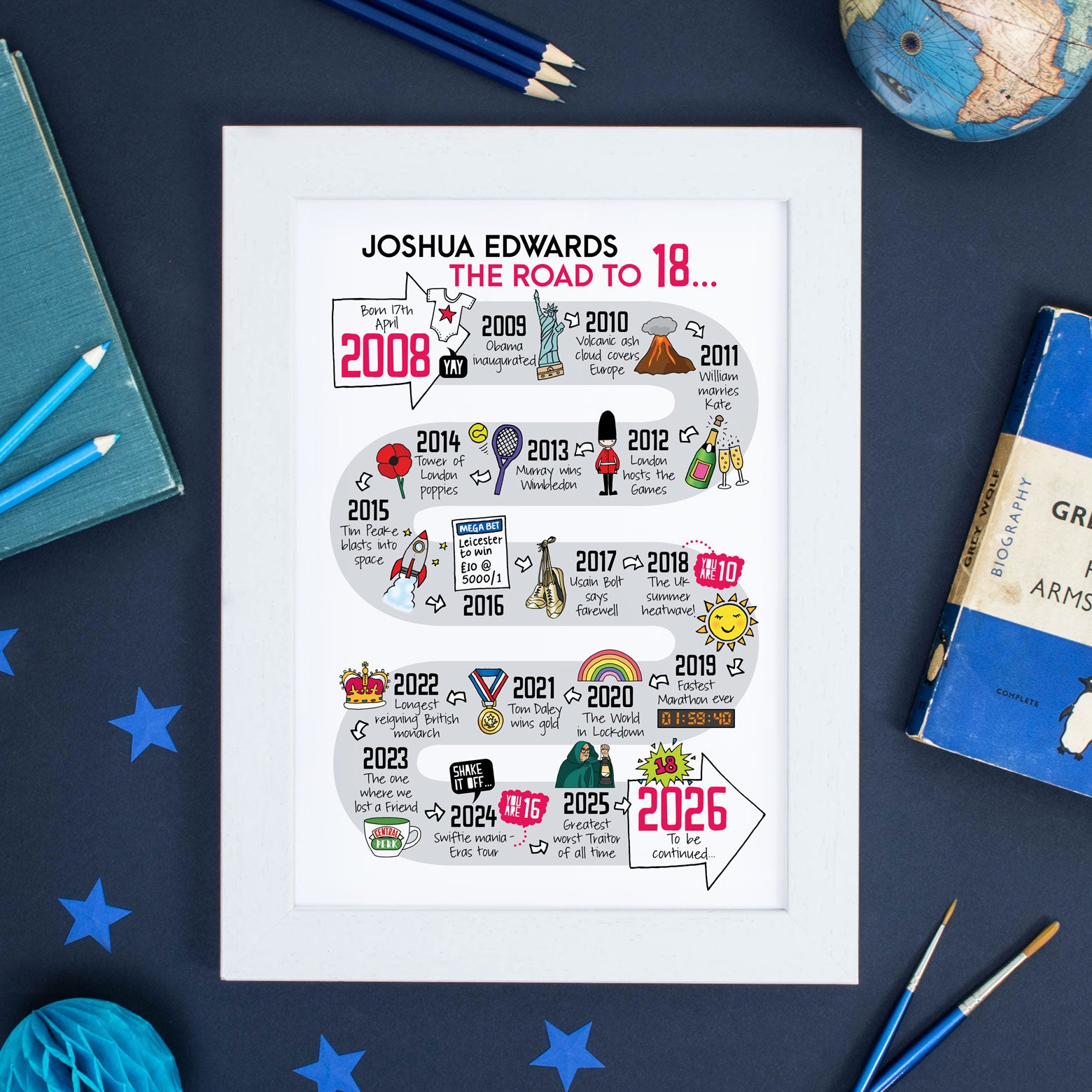 If you'd like to personalise it further by changing up to five ‘dates’ to be more significant to the recipient, then you'll need to head to our other listing.